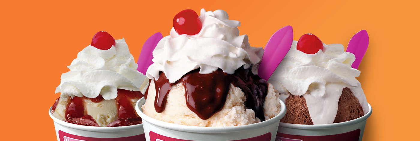 Sundae Flavors: Strawberry, Pineapple, Butterscotch, Marshmallow, Caramel, Cherry, Chocolate, Peach* and Raspberry*