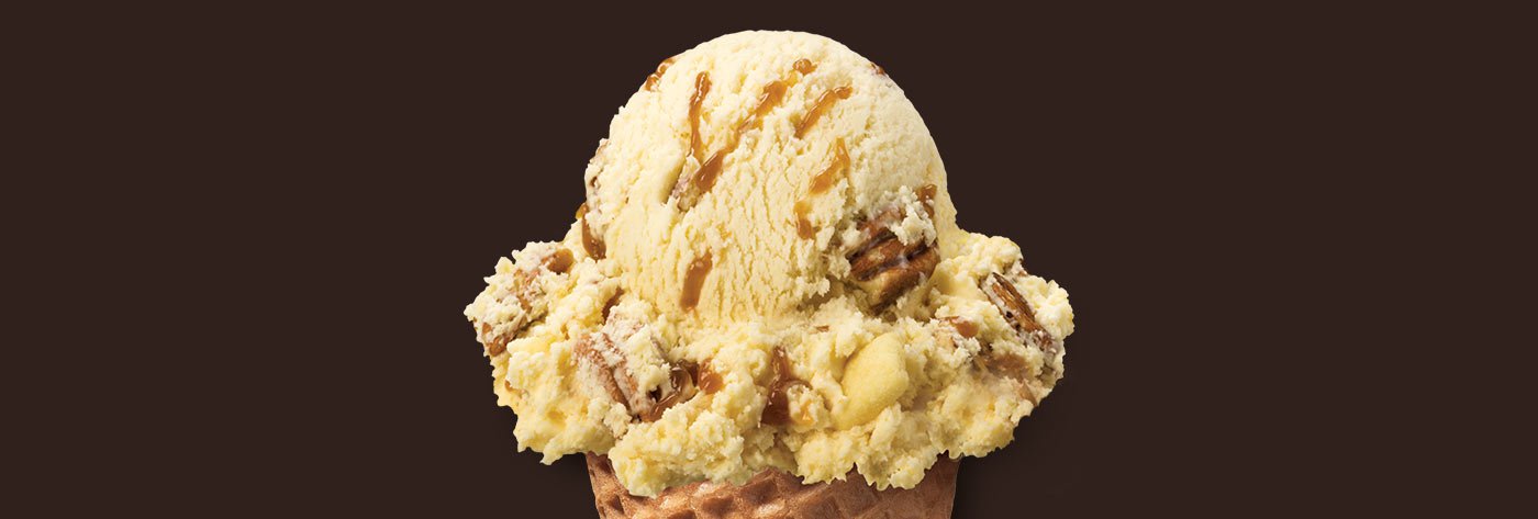 This special recipe is made up of our own brown sugar ice cream with a praline swirl, speckled with pecans and pieces of piecrust. It’s a slice of heaven in a scoop.