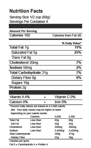 SKIM MILK, CARAMEL RIPPLE [SUGAR, CORN SYRUP, SKIM MILK, CREAM, SALT,CARRAGEENAN, CELLULOSE GUM, VANILLIN], CREAM, SUGAR, CHOCO CONE PIECES [CHOCO COATING (POWDERED SUGAR [SUGAR, CORNSTARCH], COCONUT OIL, COCOA PROCESSED WITH ALKALI, COCOA, BUTTER OIL, SALT, SOY LECITHIN, VANILLA EXTRACT [ALCOHOL, WATER, PURE BEAN EXTRACTS, SUGAR], CONES [UNBLEACHED WHEAT FLOUR, SUGAR, SOYBEAN OIL, SALT, SOY LECITHIN, AND COCONUT OIL], SUGAR, CORN SYRUP, WHEY, STABILIZER [MONO & DIGLYCERIDES, CELLULOSE GUM, LOCUST BEAN GUM, CARRAGEENAN], NATURAL AND ARTIFICIAL FLAVOR, ANNATTO [COLOR].